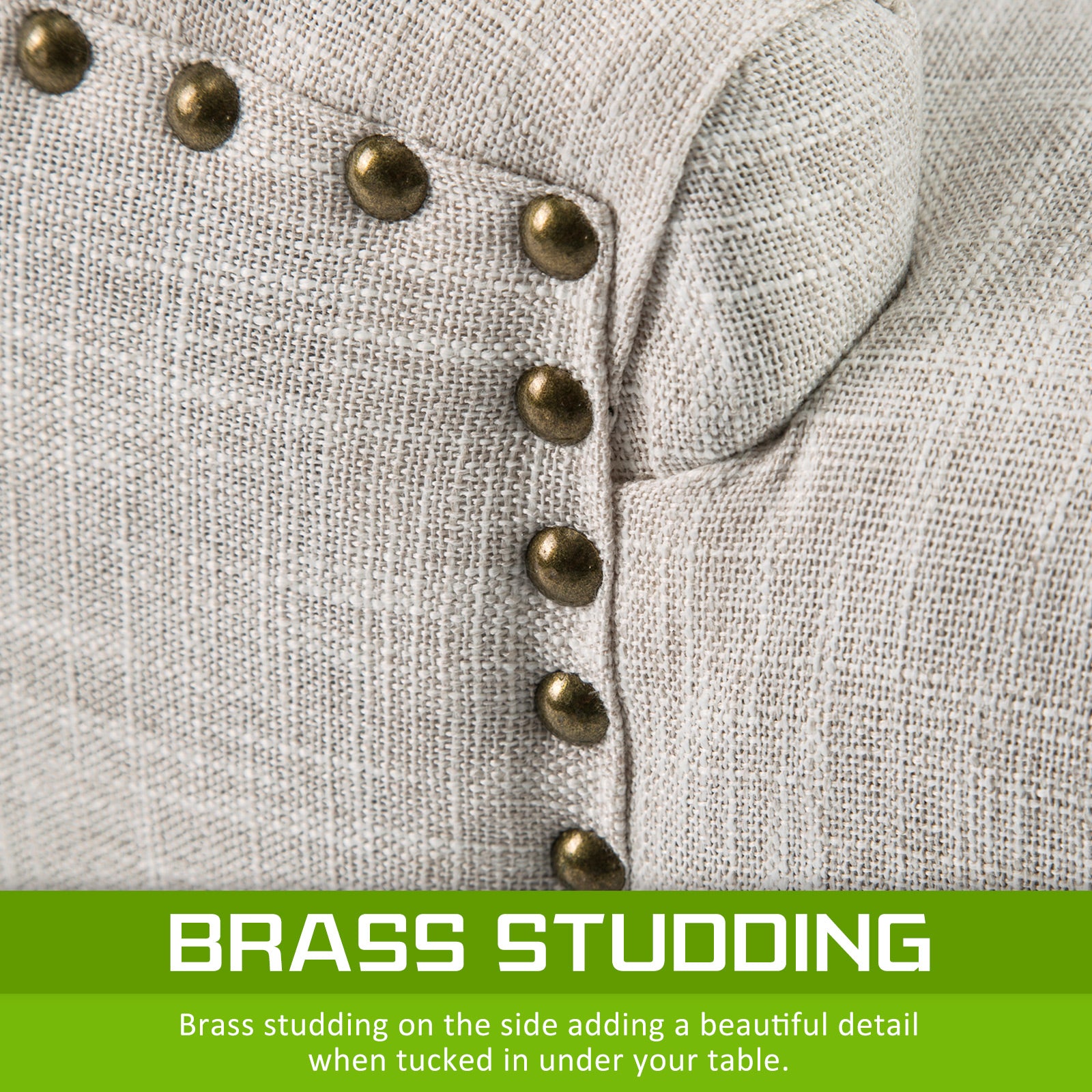 Designed with comfort in mind, each seat features a generous 13cm of high-resilience foam, providing an expansive and plush seating experience. The exquisite upholstery, adorned with deep tufting and brass stud accents, encapsulates the essence of French provincial style, offering a delightful seating experience for family and guests alike.