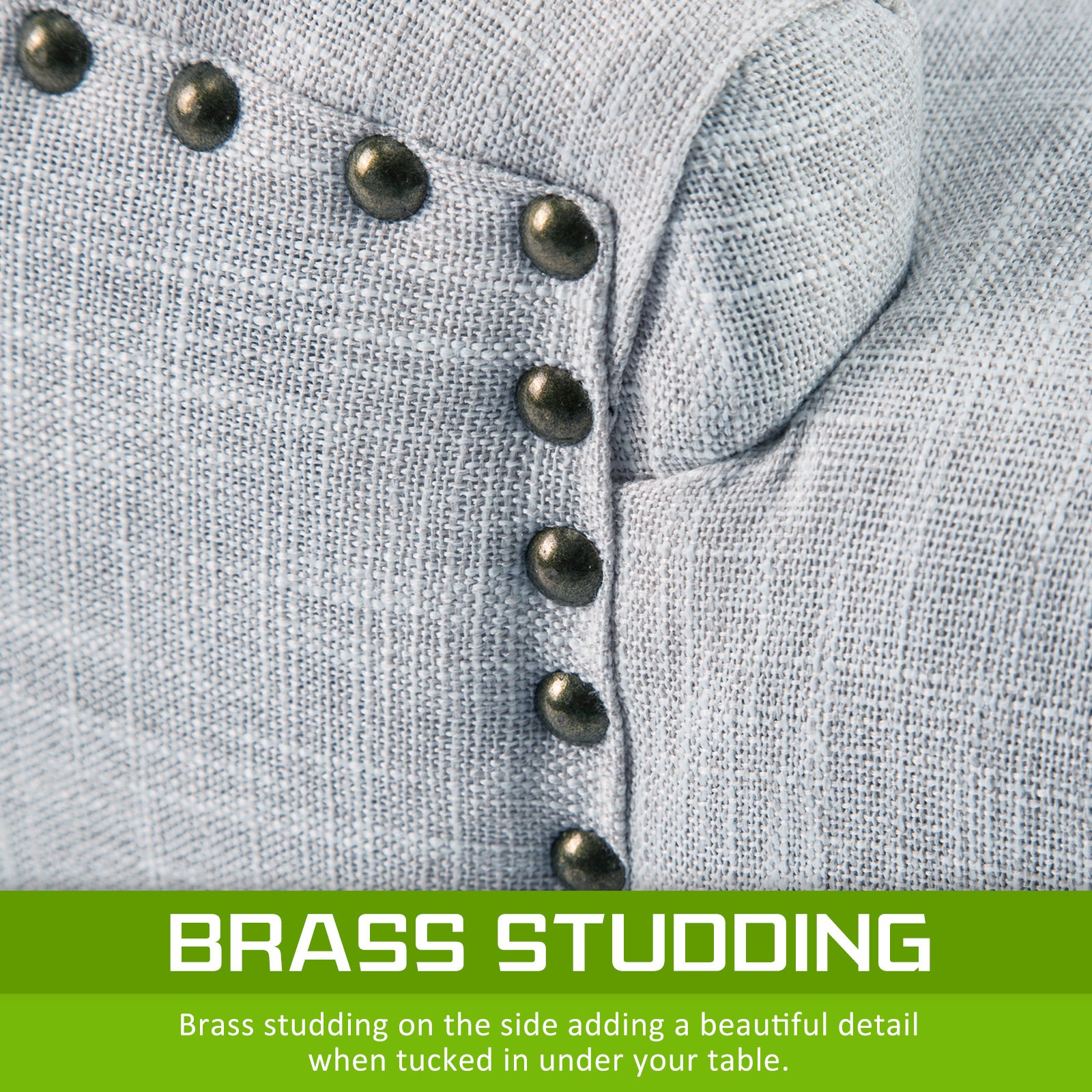 Featuring a generously padded seat with 13cm of high-resilience foam, these chairs offer exceptional comfort. The wider seat design, combined with exquisite upholstery, deep tufting, and brass stud accents, ensures a pleasurable seating experience for you, your family, and guests.