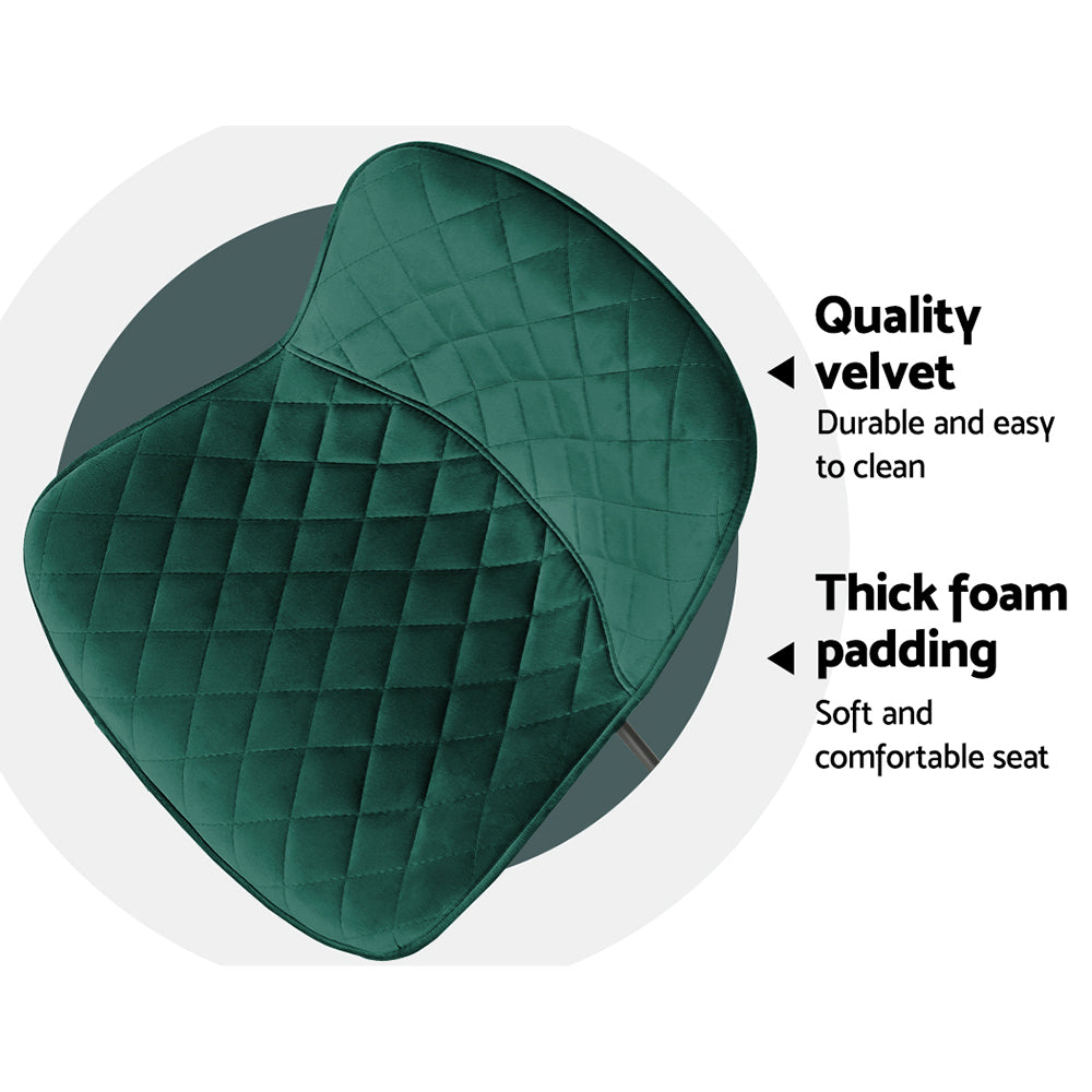From gorgeous soft velvet upholstery and sturdy metal structure to exquisite stitching to seat height, Artiss Flavian bar stools are the definition of sheer luxury. Not an ordinary one but stands out in every aspect, whether it's craftsmanship, style, upholstery, comfort, or quality that speaks for itself. It is something you would surely want to add to your space. You can style them around the kitchen breakfast counter or the bar section, Artiss Flavian bar stools will effortlessly fuse in any décor and enhance and lend a luxurious touch and feel to your space. Its sleek and stylish design, gorgeous structure, comfortable backrest and footrest, and solid metal base with floor protectors are noteworthy. It reveals its character and timeless presence, and with two colour options, choose the one that best complements your space. Additionally, the luxurious Flavian bar stools are made strong and durable and superbly finished, which makes it a warm addition to any place.