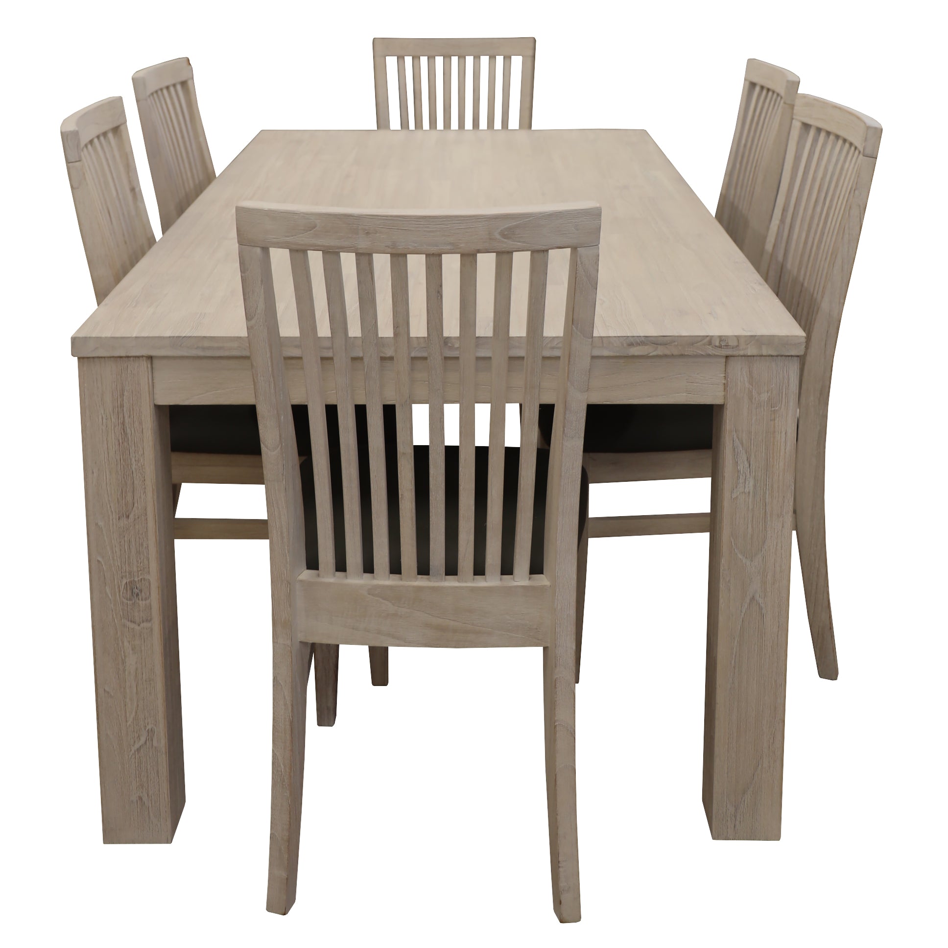 Nothing beats the pleasure of enjoying delicious food, especially when it is served at home on a beautiful dining table. Bring home this gorgeous dining table set designed in coastal style to give a refreshing look to your dining space. The set is made of sustainably harvested Mountain Ash Wood, which is known for its attractive looks, great strength, shock-resistance, durability, and ease of maintenance. The spacious 6-seater table is complemented with lovely multi-colored chairs with smooth and comfortable PU upholstery in cool grey colour. Brushed white wash colour gives instant charm to the entire set. A one-year warranty is included with the simple-to-assemble dining set. Only the dining table needs to be assembled.